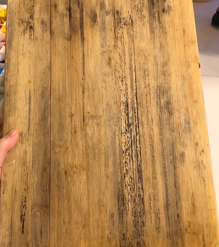 老爸家里面的木菜板用了一年多就上面已经出现了霉菌,但他就不舍得扔,总觉得能继续用,我真的无语死了,有一次趁老爸没在家我买了一个新的,把老菜板给扔掉了。